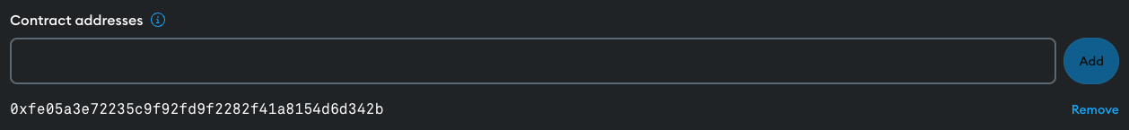 To allow a specific Ethereum address, input it into the Contract Addresses field and select Add.